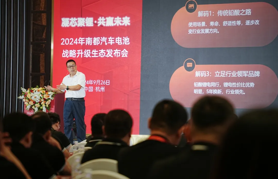 On September 26, the “Gathering Power and Lithium for a Shared Future” 2024 Narada Automotive Battery Strategic Upgrade and Ecosystem Launch Event was held in Hangzhou. With over 200 leaders and guests in attendance, the company officially launched the Narada Parking Smart Lithium Battery, advancing towards the "5180" marketing strategic goal.