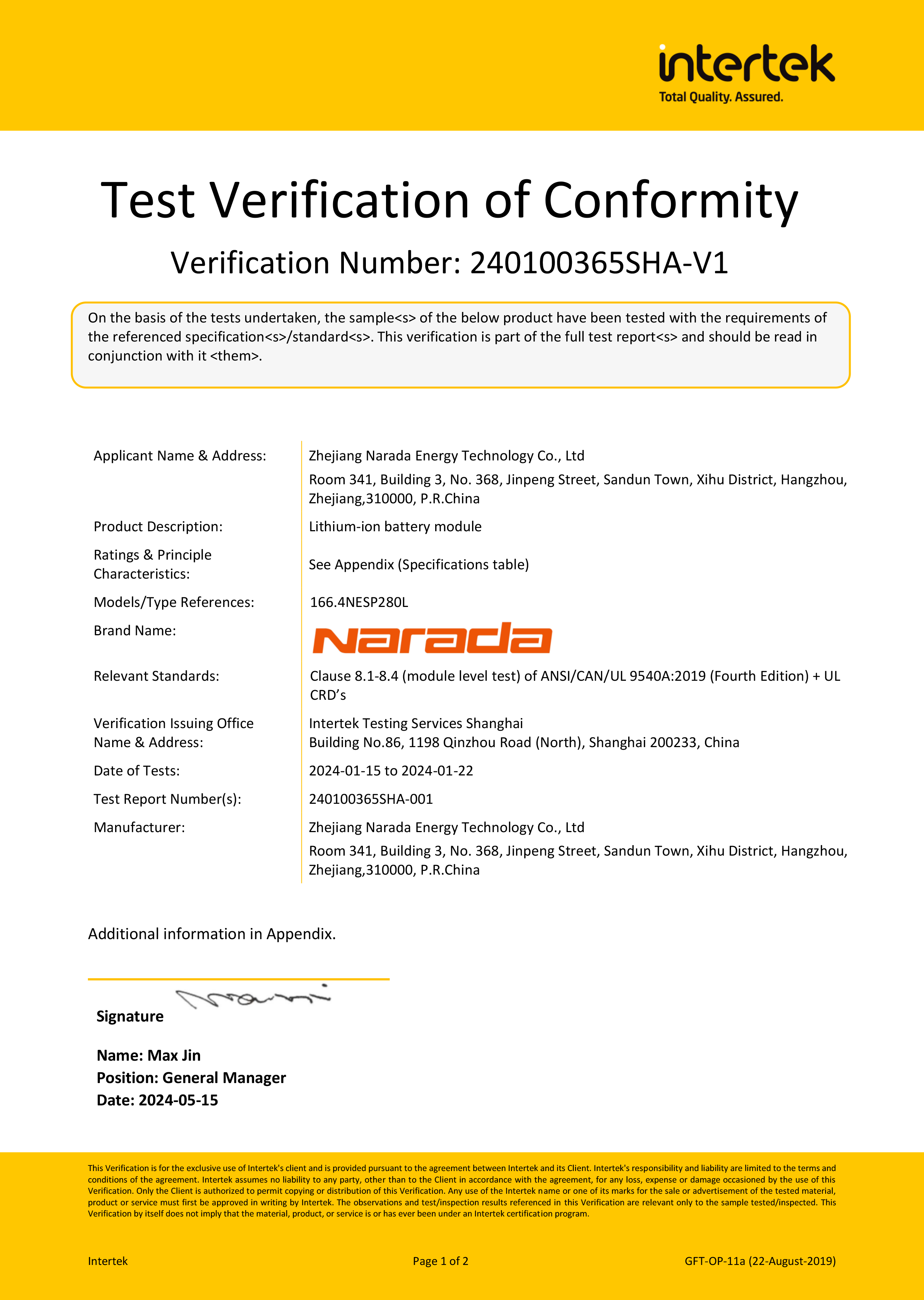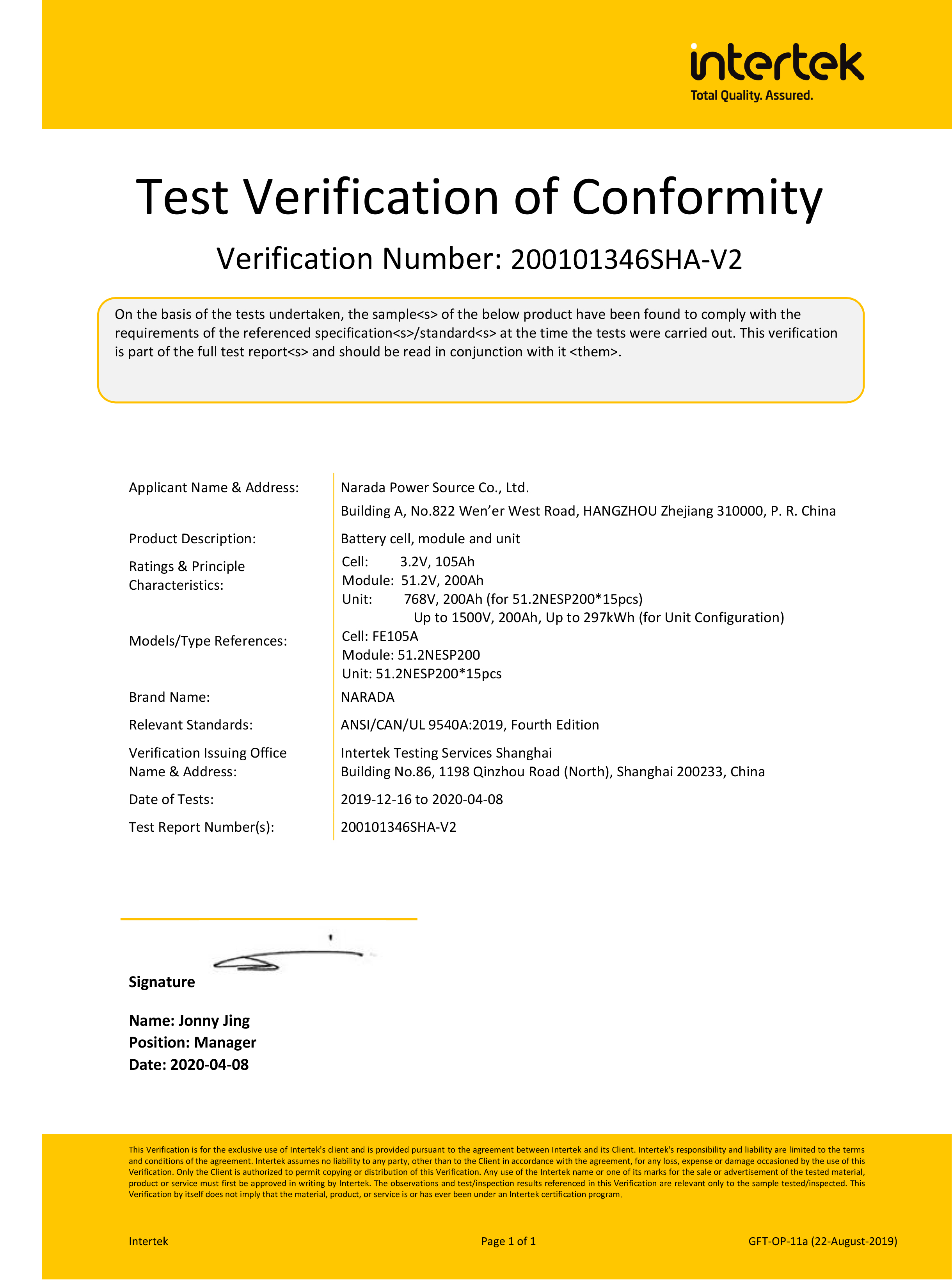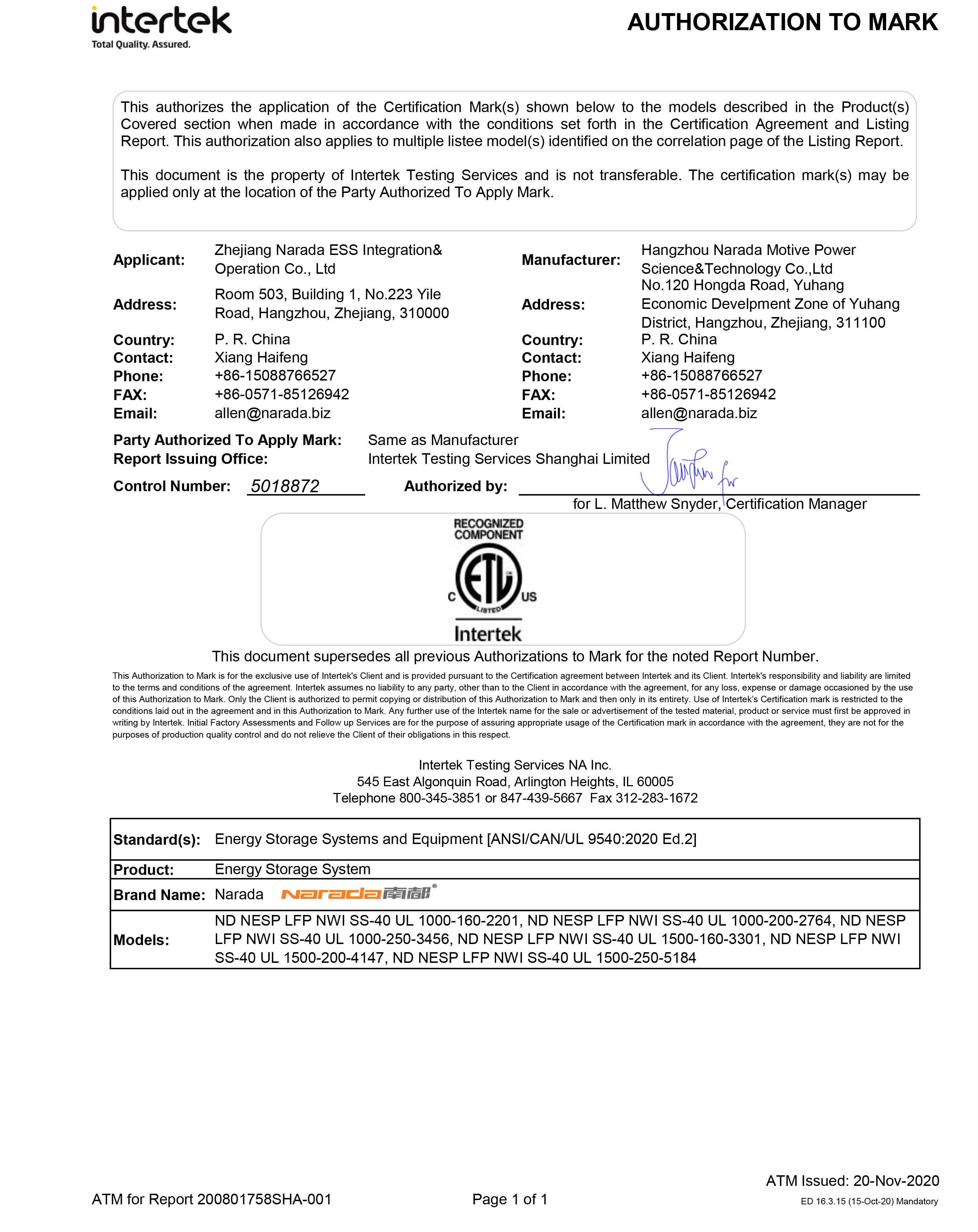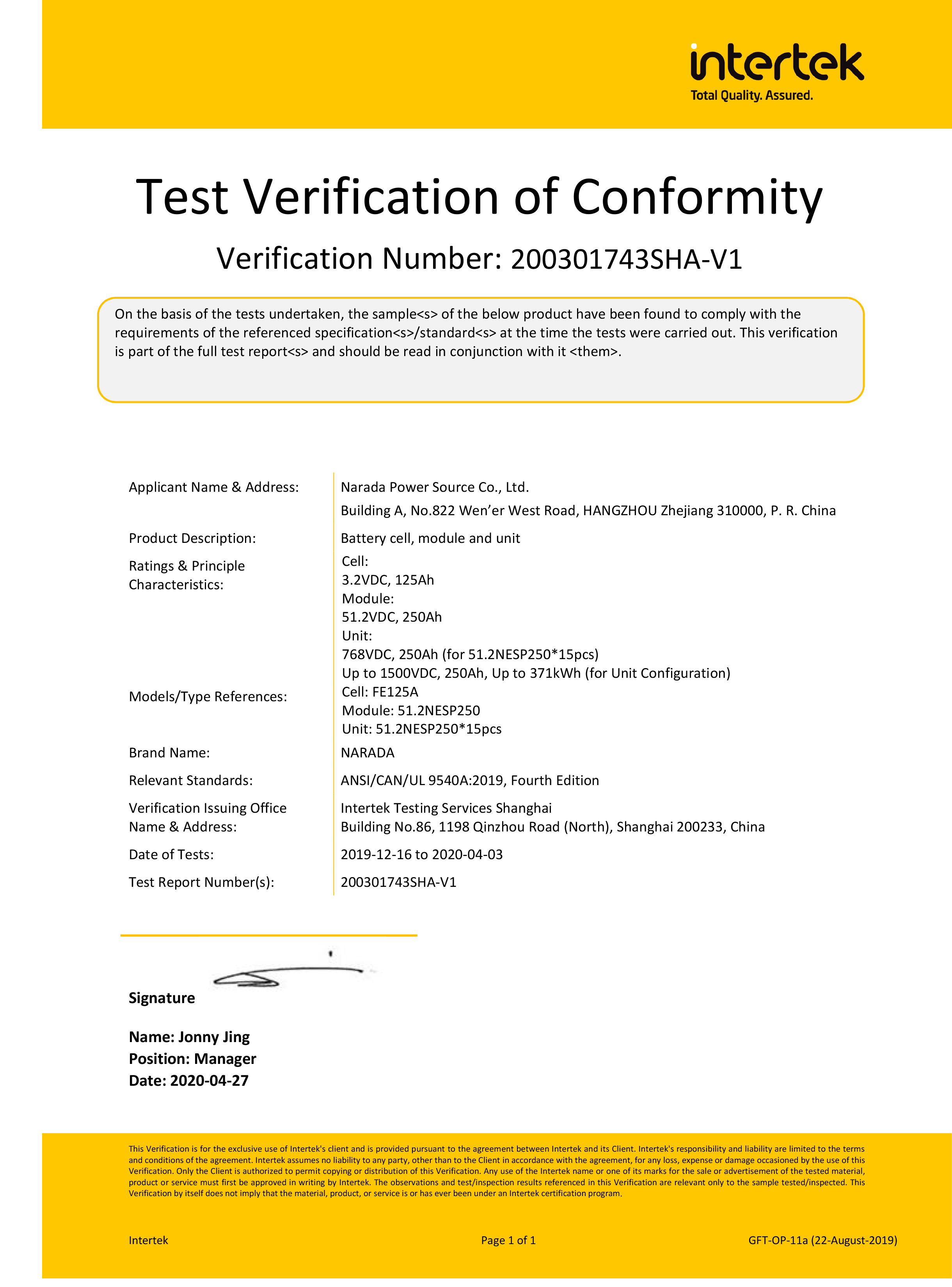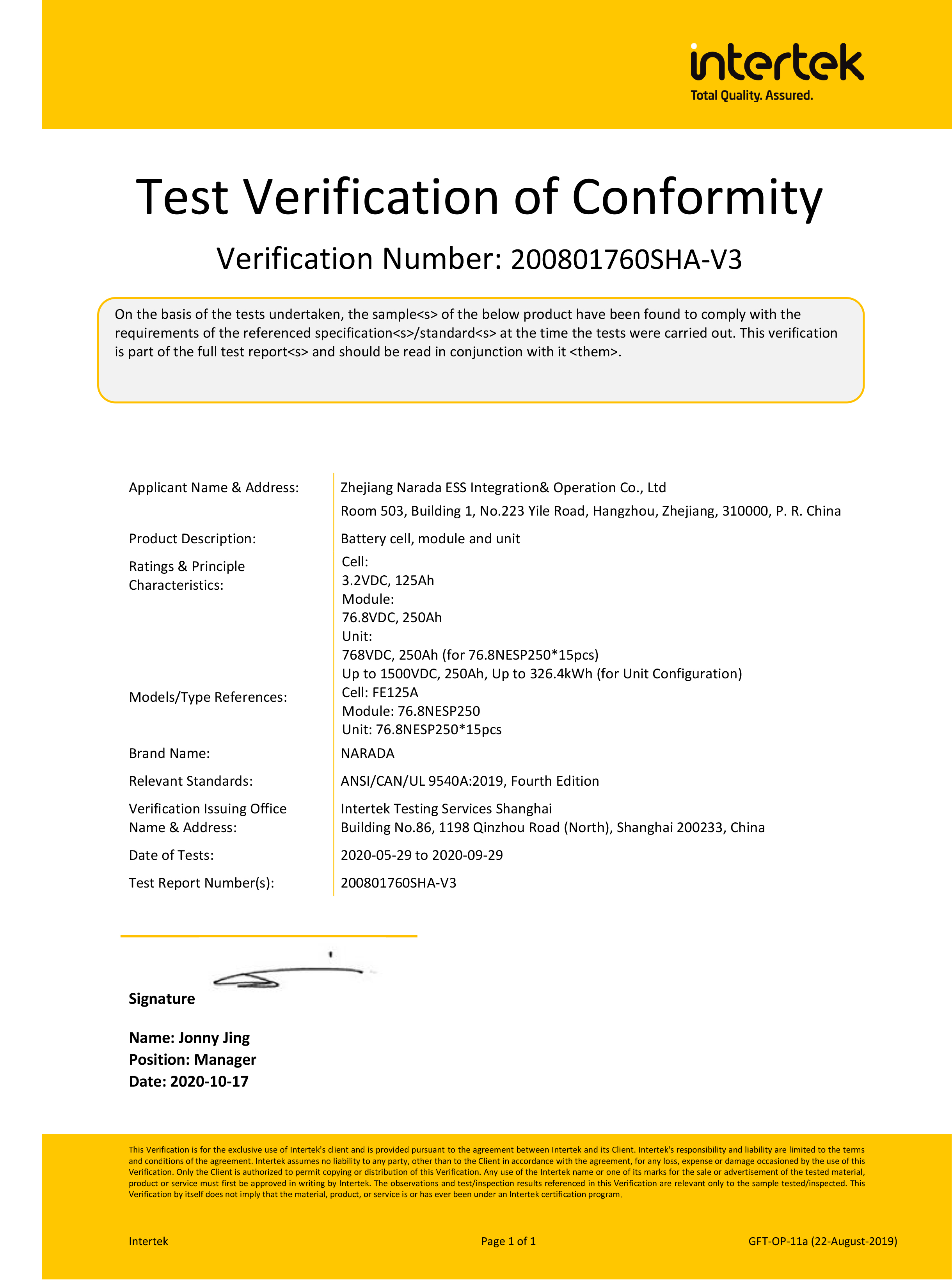 OD体育官网电源为全球第一批通过MW级集装箱储能系统UL9540、UL9540A认证的企业。通过UL9540、UL9540A认证,意味着OD体育官网储能系统在全球范围内具有极佳的认可度。